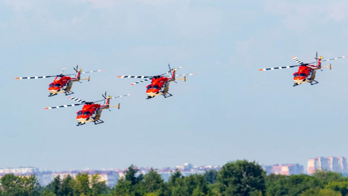 The Sarang Helicopter Display Team of the IAF is all set to perform for the first time at the MAKS International Air Show being held at Zhukovsky International Airport, Russia. The air show is a biennial fixture and this year’s edition is scheduled from 20 to 25 July 2021. This is the first occasion when the Sarang Team is performing its four helicopter aerobatics display in Russia, with its ‘Made in India’ ‘Dhruv’ Advanced Light Helicopters (ALH). These HAL manufactured machines have hingeless rotors and are equipped with state-of-the-art avionics, which makes them extremely suitable for military aviation. Apart from the IAF, the Indian Army, the Indian Navy and the Indian Coast Guard also operate this helicopter.