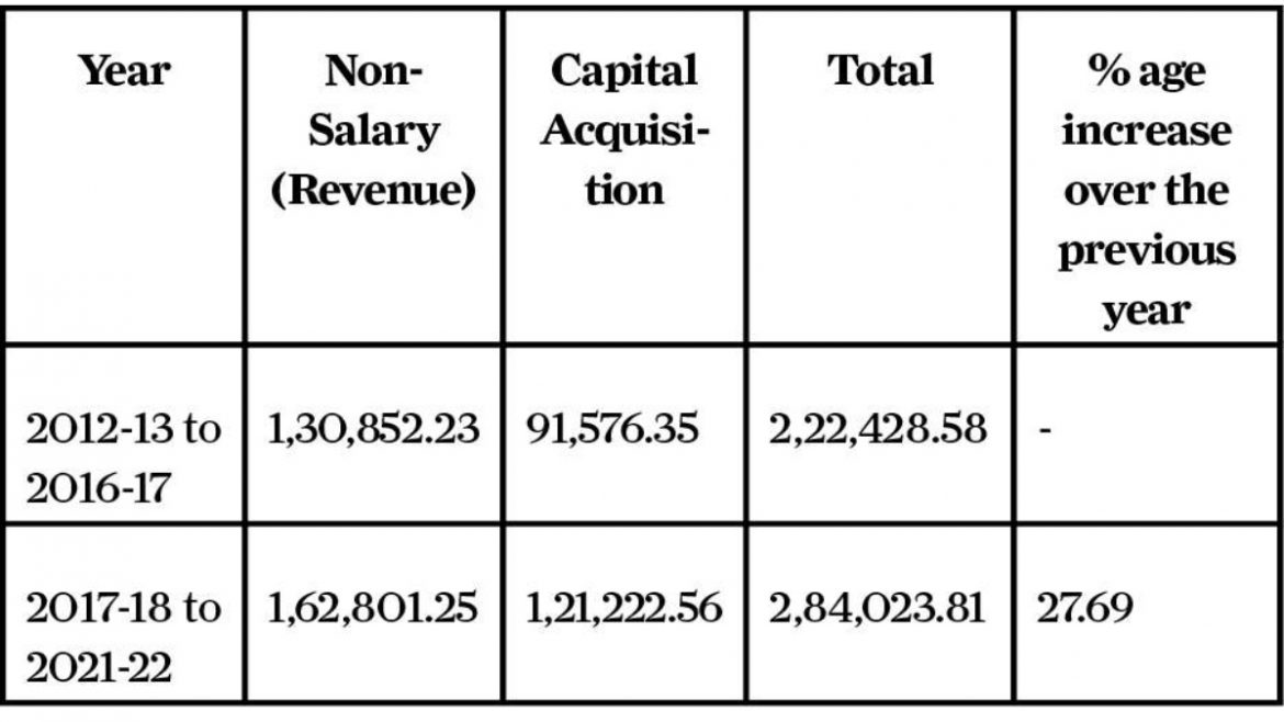 Details of BE allocation under Non-Salary (Revenue) Budget and Capital Acquisition Budget of Indian Army during the five year period of 2017-18 to 2021-22 and previous five year period of 2012-13 to 2016-17 is given in the below chart. The below figures indicate that there has been substantial increase of 27.69% in the five year period of 2017-18 to 2021-22 over 2012-13 to 2016-17. Further, the operational efficiency matches the technological advancement commensurately.