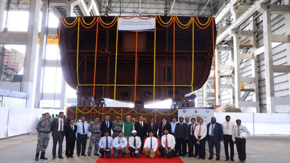 Keels of the first warship of the Anti-Submarine Warfare Shallow Water Craft (ASW SWC) project and the third warship of Survey Vessel Large (SVL) project for the Indian Navy were laid virtually on Friday by Vice Admiral (VAdm) SN Ghormade, Vice Chief of Naval Staff. The ships are being built by GRSE as part of the indigenous shipbuilding program for construction of eight ASW SWC and four SVL for the Indian Navy. The ships are partly being built under a unique Public Private Partnership model by GRSE at L&T Shipyard, Kattupalli. The Keel Laying is a major milestone activity in the shipbuilding process and indicates the amalgamation of various blocks towards construction of a ship.